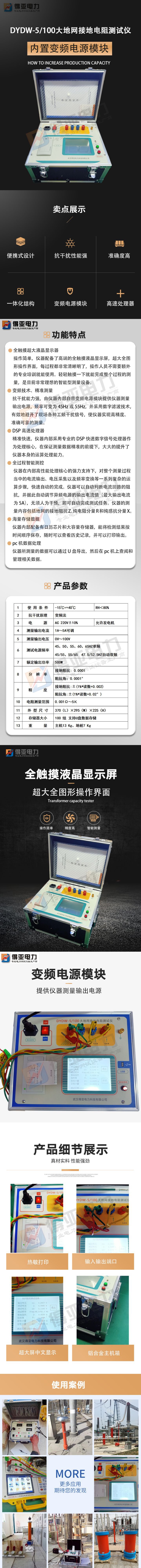 得亞電力大地網(wǎng)接地電阻測(cè)試儀DYDW-5/100