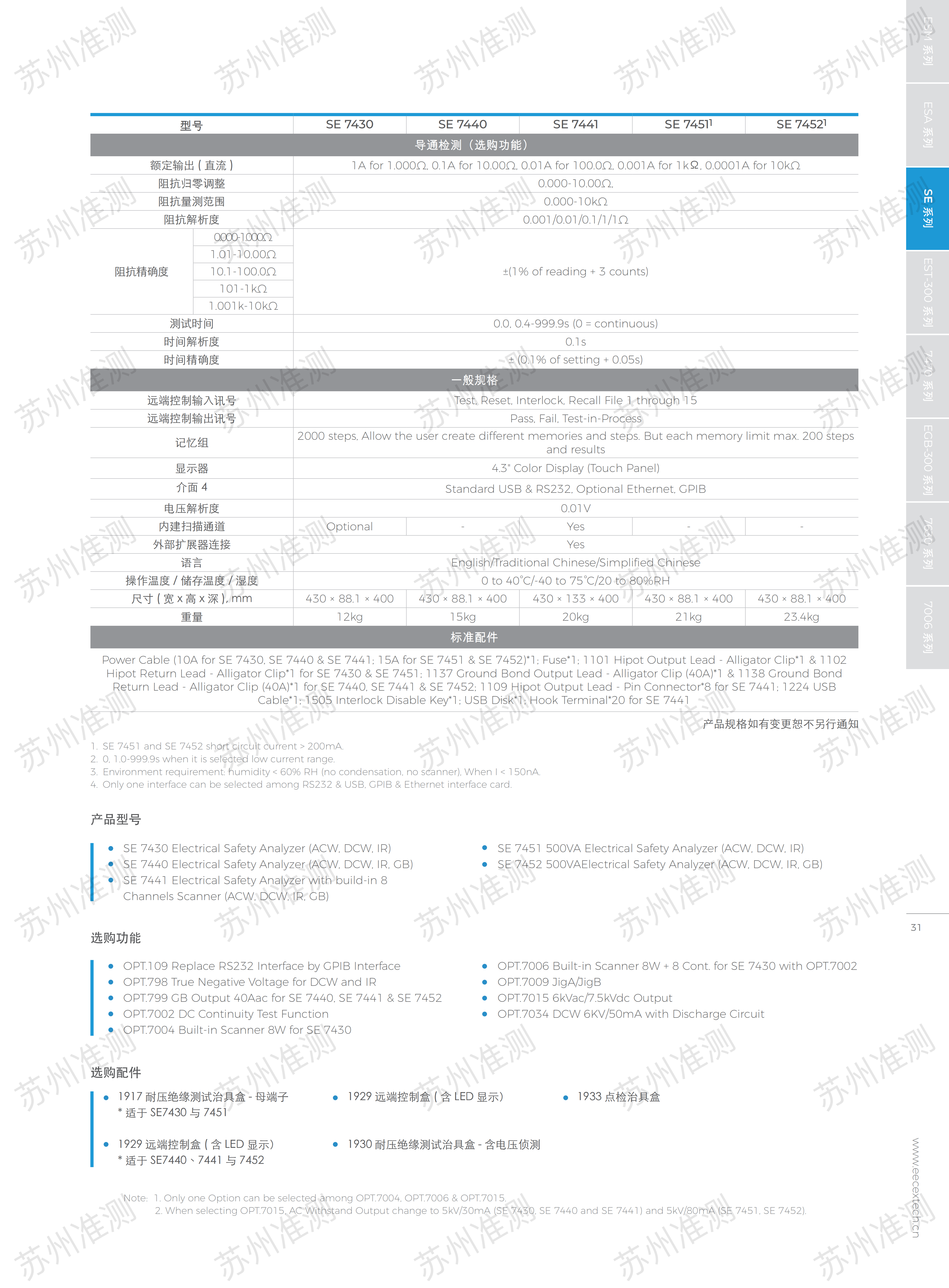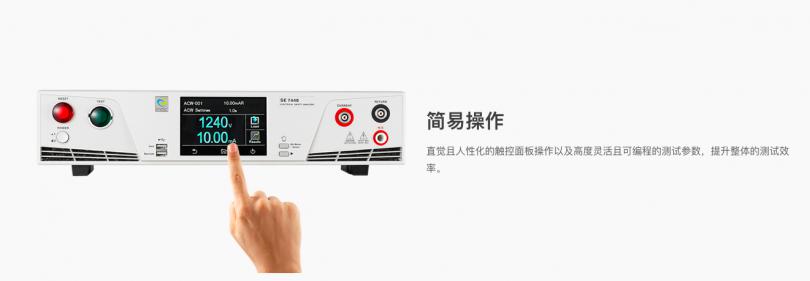 新一代的 SE 系列四合一安規測試儀效能再升級,結合了業界指標性的ARC 電弧偵測功能,高精度四線測量及真實負電壓測試,進一步強化安全性,和輸出功率達 500VA的便利性。完善配套的測試儀更加符合現今產業多變的實時需求。在操作接口上,搭配4.3吋多點觸控面板及條形碼掃描鏈接,使用上更簡潔有效率。
