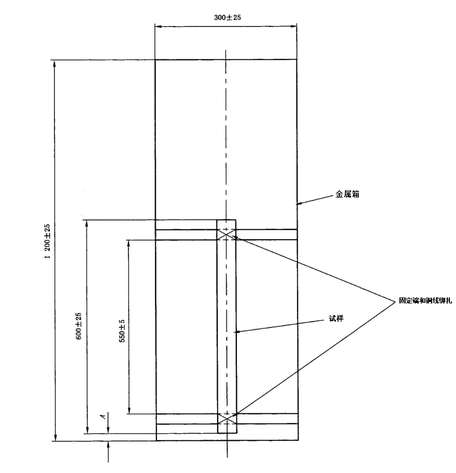 試驗方法將一根60cm長的試樣垂直固定在前壁開通的金屬箱內,固定端上部和下部距離在550mm,固定試樣時使試樣下端距離金屬箱底面約50mm。火焰長度175mm的丙烷燃燒器從距試樣的上部固定端450mm的位置上火焰錐與電纜以45度角接觸。用鋒利的物體按壓電纜表面,如果彈性表面在某點變為脆性(粉化)表面,則表明該點既是炭化部分起始點。如果炭化部分距離固定端下部不超過50mm,則電線電纜通過試驗。